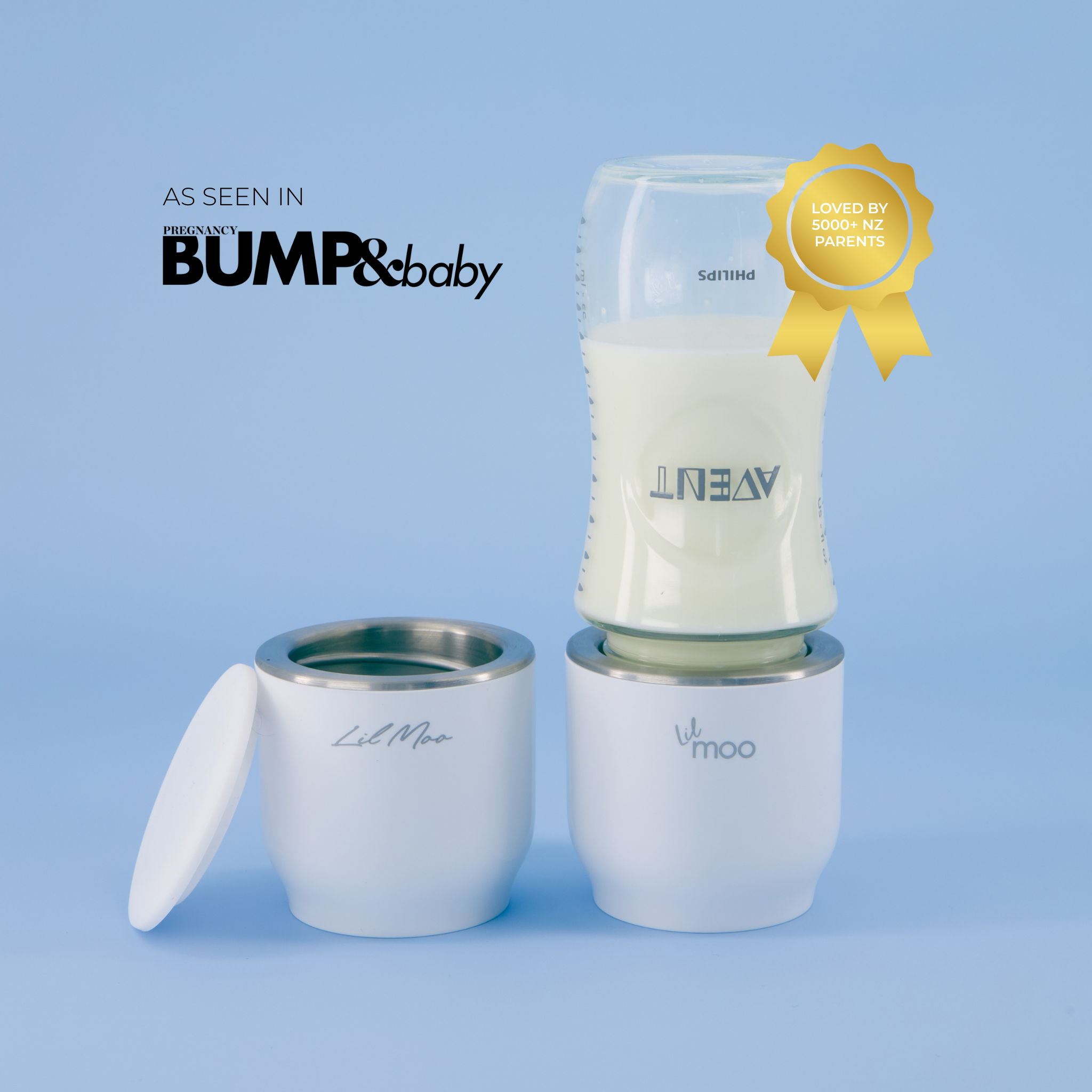 After wiping down your Lil Moo place the lid back on firmly (there is a trick for this) so that they stay secure on the bottle warmer:Â